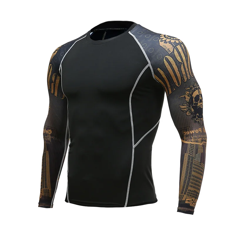 Для мужчин s Фитнес одежда с длинным рукавом Рашгард футболка Для мужчин бег Бодибилдинг кожу жесткой Термальность сжатия рубашки тренажер...