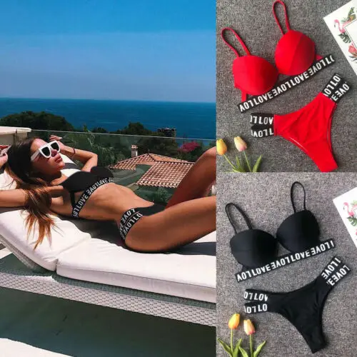 2019 новый стиль, сексуальные мягкие бикини и бюстгальтер, купальник, женский купальник с буквенным пуш-ап принтом, купальник пуш-ап, купальны...