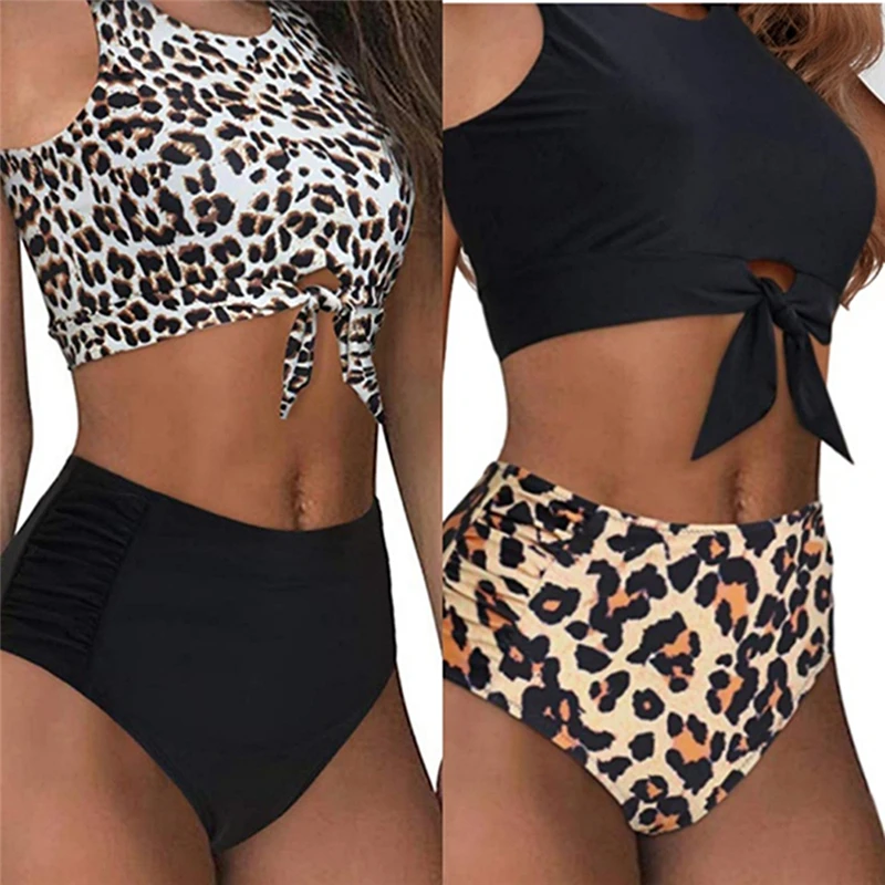 2020 женское сексуальное бикини с высокой талией, танкини, Леопардовый купальник, Раздельный купальник из двух частей, купальник для отдыха, пляжный купальный костюм, лето 2020
