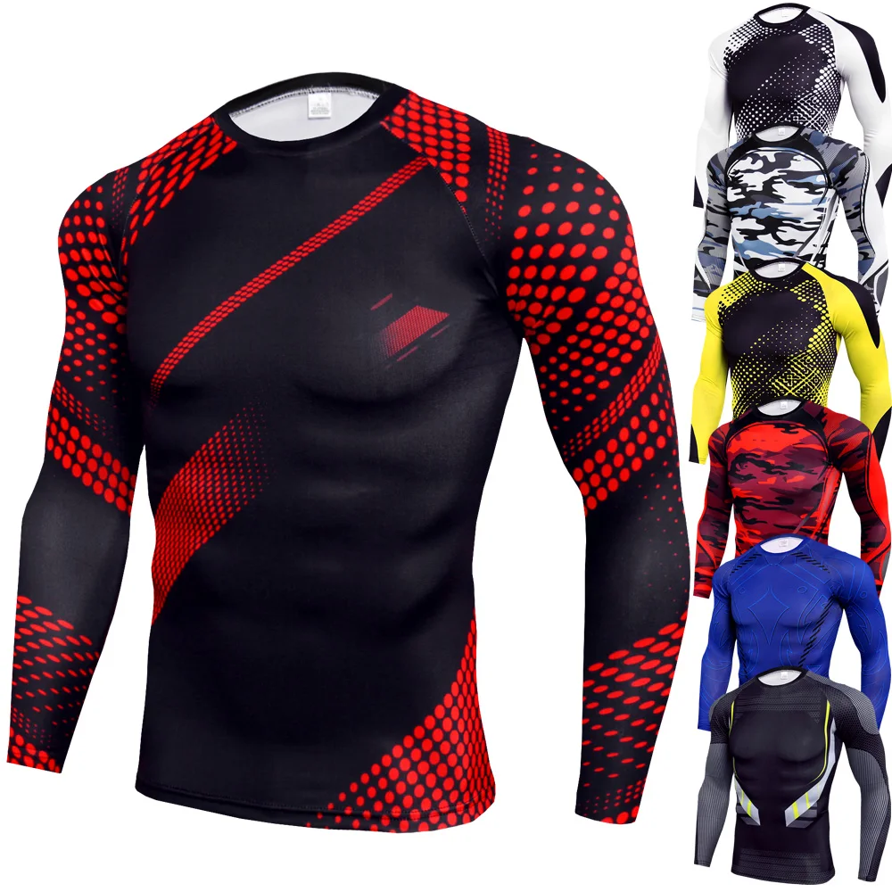 Новинка, Мужская футболка для бега, для спортзала, Спортивная футболка, дышащая, длинный рукав, компрессионный Топ, одежда для спортзала, фут...