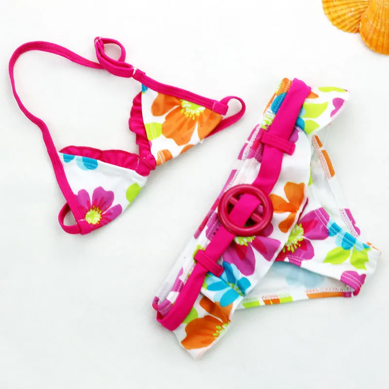 2018 новый летний милый купальник с цветочным узором для девочек, Раздельный купальник из двух предметов для девочек, детское бикини с цветоч...