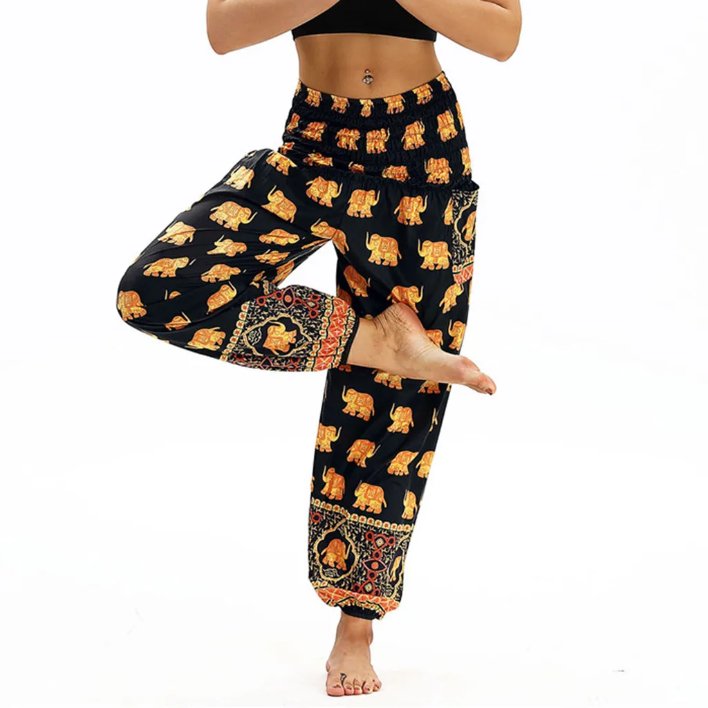 Женские спортивные штаны, повседневные, летние, Boho, с принтом, свободные, для йоги, шаровары, в винтажном стиле, с высокой талией, штаны, Spodnie ...