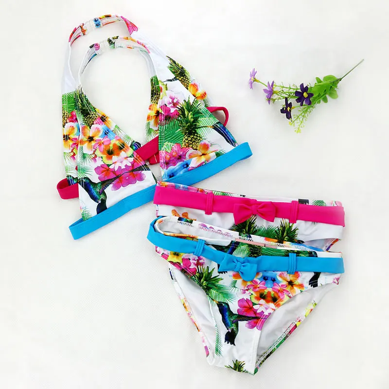 2018 новый летний Cuhk девочки раздельный бикини дети милый цветок и животный узор купальники дети девочка цветочный купальник оптовая продажа