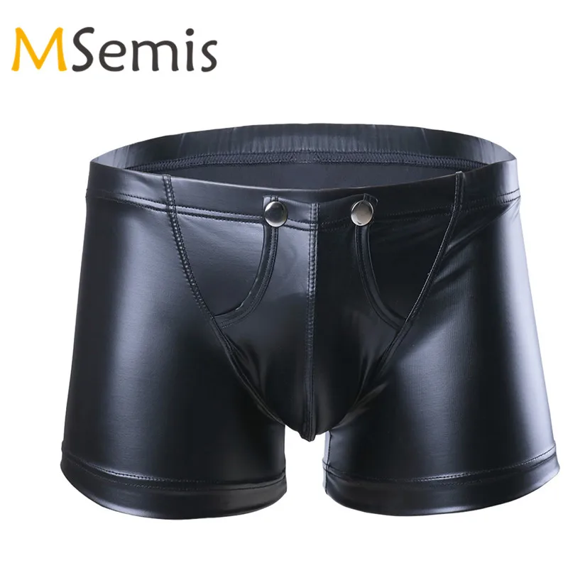 Пикантное мужское белье нижнее белье из кожзаменителя трусы шорты нажмите кнопку с трусы с отдельной секцией для пениса сетчатый бандаж ге...