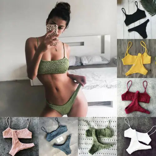 Новинка 2017 года, сексуальное бикини для девушек, пуш-ап, плиссированный треугольный купальник, Женский пуш-ап бюстгальтер, комплект бикини, ...