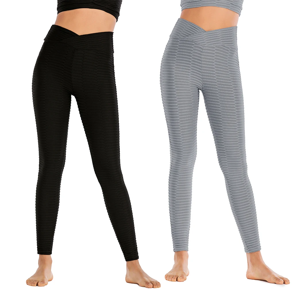 Женские леггинсы с высокой талией и рюшами, спортивные Леггинсы для йоги, лифтинговые штаны, спортивная одежда для бега, эластичные леггинс...
