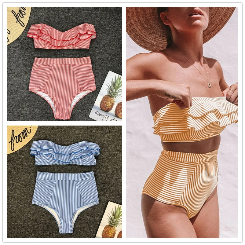 2019 летний горячий сексуальный женский с высокой талией набор бикини полосатый купальник купальный костюм пляжный