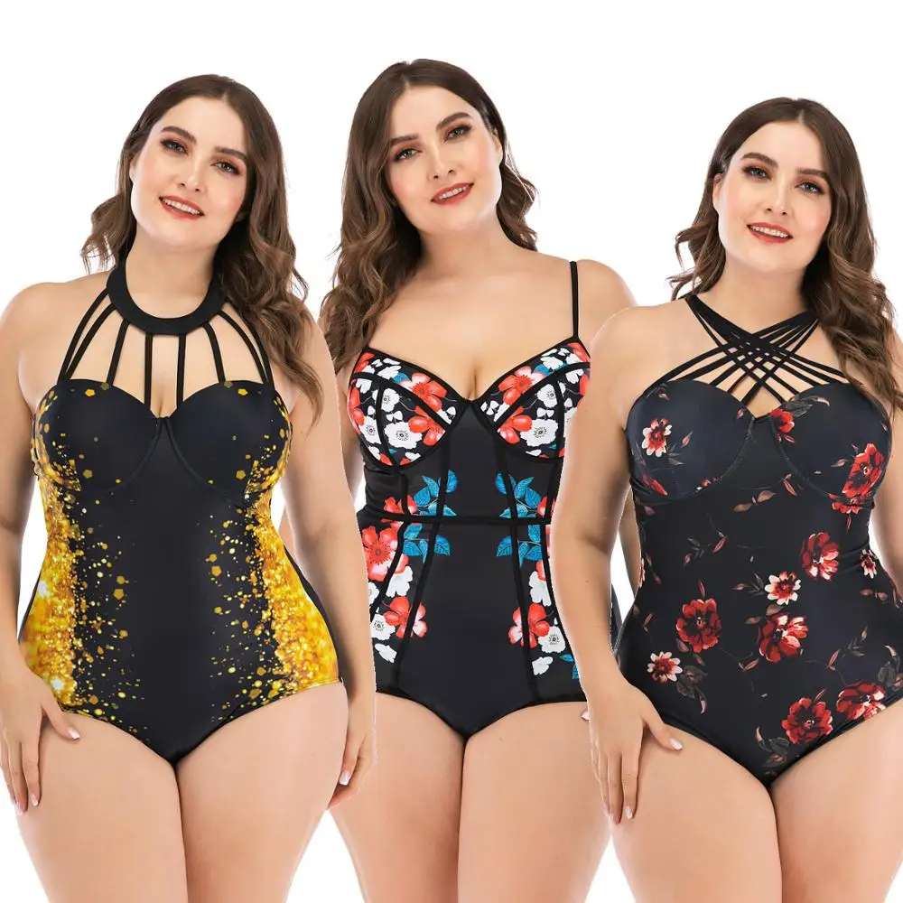 Купальник большого размера, Цельный купальник, бандаж, купальник с высоким вырезом, цветочный принт, большой купальный костюм, пуш-ап, женское бикини, 4XL