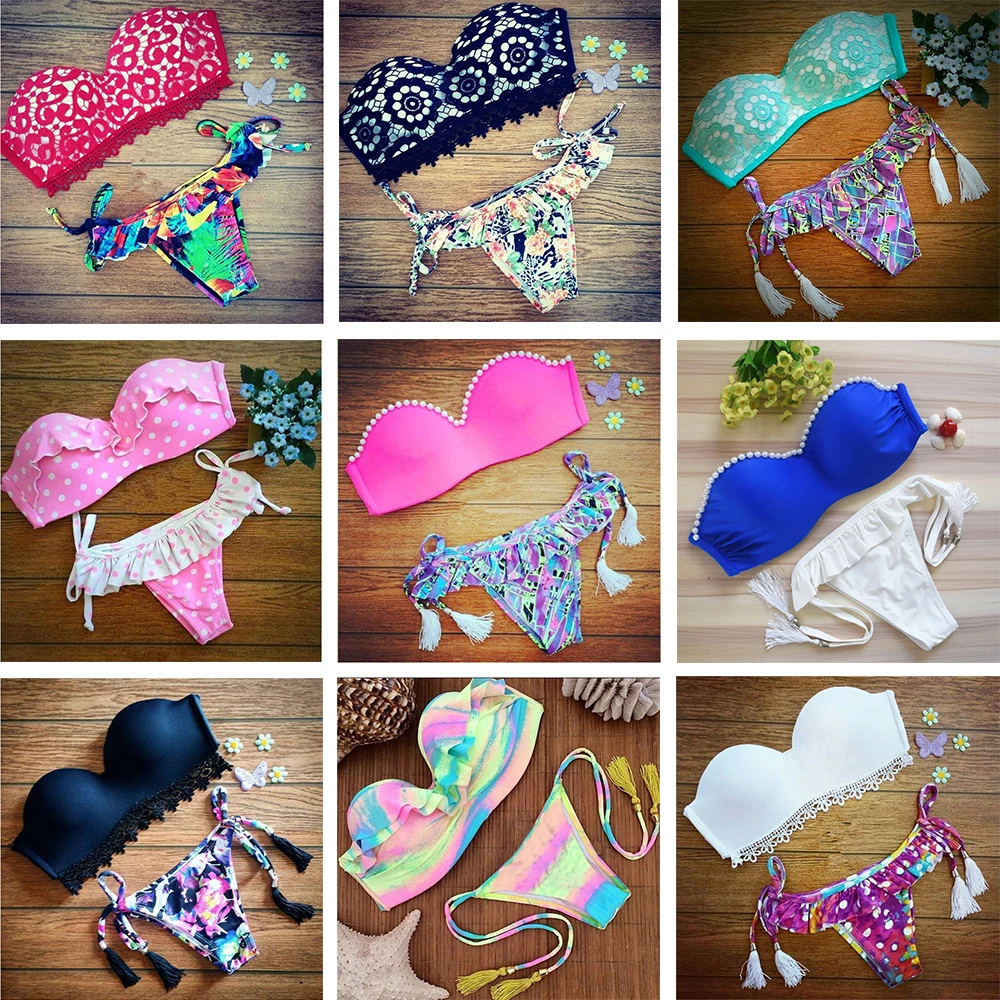 Комплект бикини Sexy Push Up Однотонный женский купальник бикини купальник с заниженной талией Женская повязка ванный комплект пляжная одежда