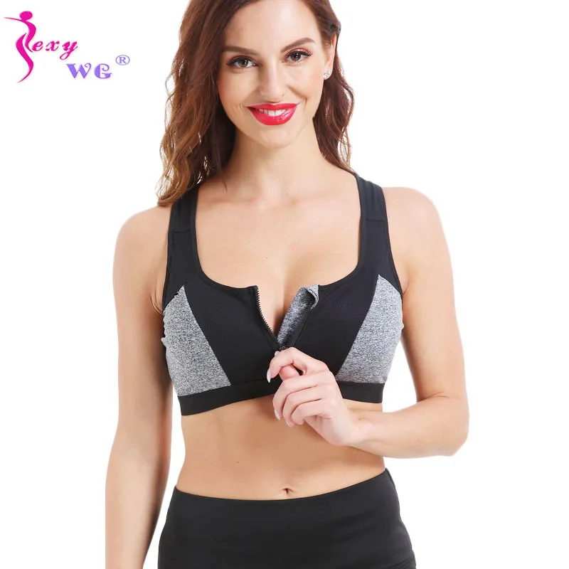 SEXYWG, женский профессиональный спортивный бюстгальтер, на молнии спереди, для бега, йоги, бюстгальтеры, пуш-ап, бюстгальтер, беспроводной, ударопрочный, укороченные топы, фитнес-жилет