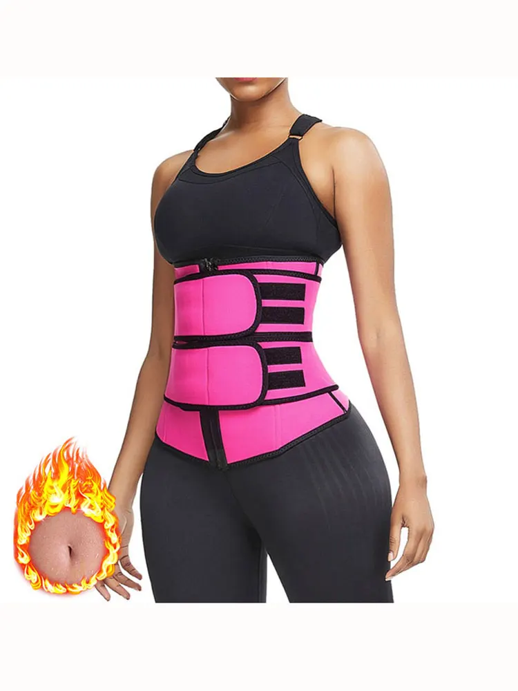 Женский тренажер для талии, корсет, триммер, пояс, формирователь тела, для похудения, с молнией, для похудения, неопрен, одежда для тренировок, розовый, черный