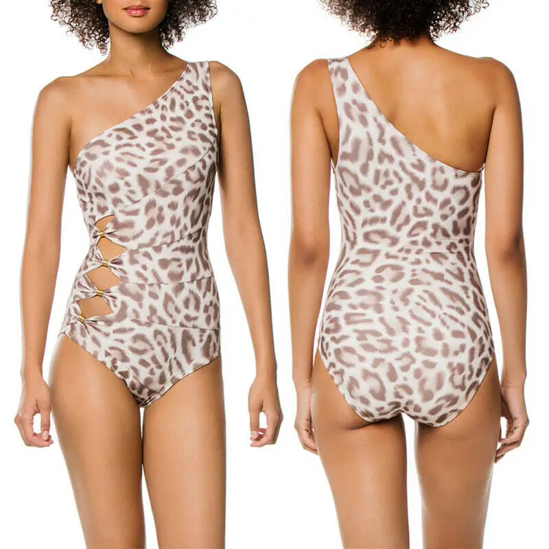 Для женщин одна шт. Монокини купальник сексуальный Открытое платье с леопардовым принтом, боди на одно плечо Бикини для купания пляжная оде...