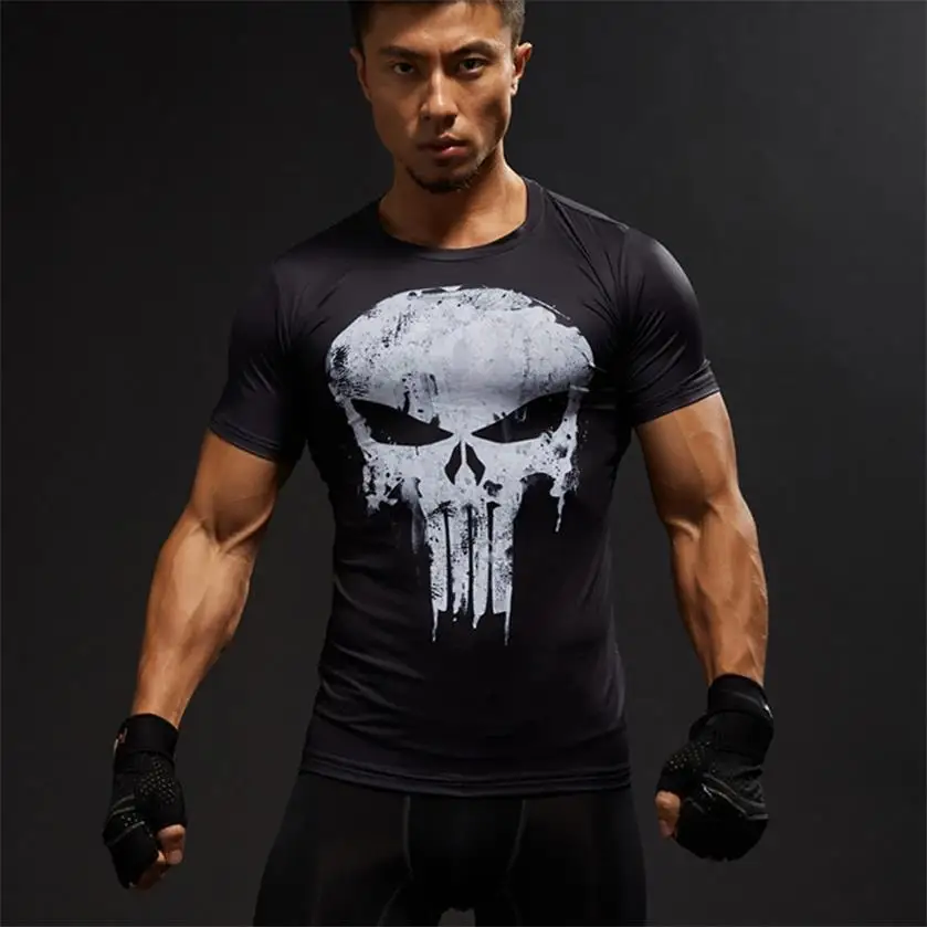 Marvel 2019 Каратель тренажерный зал Спортивная футболка Для мужчин короткий рукав Футболка мужская футболка Капитан Америка Супермен Облегающ...