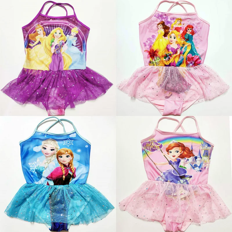 Новый обувь для девочек От 3 до 10 лет купальник Эльза и Анна одна деталь Дети купальный костюм для малыша, купальник ванный комплект летний С...