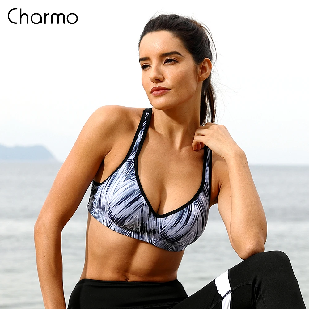 Charmo Для женщин спортивный бюстгальтер Med Impact Поддержка обратного скрещивания Бюстгалтер для йоги и бега спортивный бюстгальтер нижнее бель...