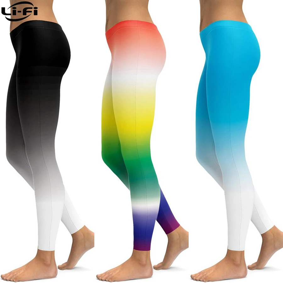 LI-FI 2019 Ombre Йога женские брюки для фитнеса тренировки Леггинсы Спорт бег Леггинсы Sexy Push Up тренажерный зал носить эластичные тонкие брюки