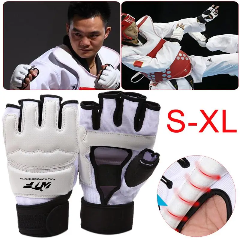 Дети взрослые тхэквондо Половина Пальцы Боксёрские перчатки песком тренировочные перчатки Санда Каратэ Муай Тай тхэквондо протектор