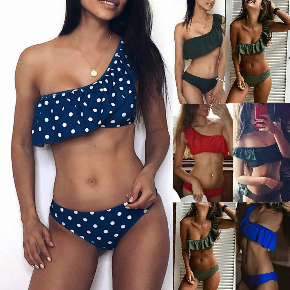 Hirigin сексуальный комплект бикини на одно плечо женский купальник 2019 в горошек с оборками пуш-ап Мягкий Купальник Летний женский купальный к...