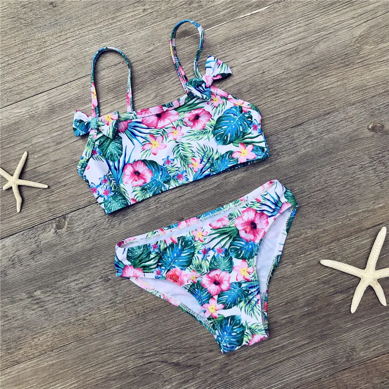 Популярный купальник для девочек, бикини, От 2 до 8 лет, Модный Купальник из двух предметов для девочек, летняя пляжная одежда, детский купальный костюм