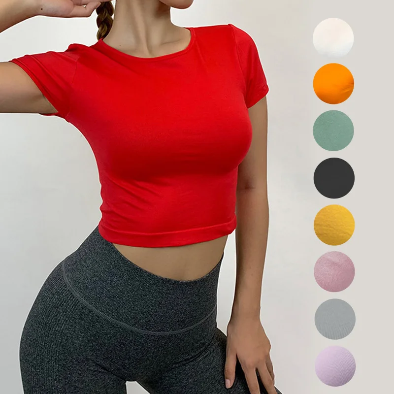 Женские спортивные топы Летняя футболка для бега, тренировочный жилет Одежда Для Фитнеса Йоги, эластичные дышащие топы с короткими рукавам...