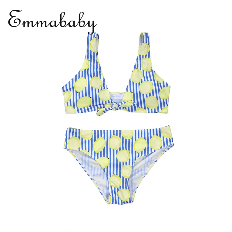 Летние Для женщин малыш лимон бикини комплект родитель-ребенок полосатый купальник пляжная Для женщин полосатый комплект бикини купальник...