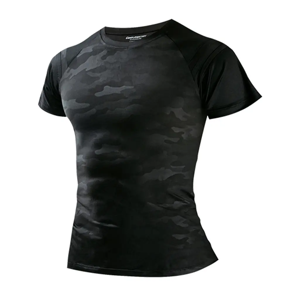 Мужская быстросохнущая Спортивная футболка для бега, мужская тренировочная футболка с коротким рукавом для фитнеса, черная камуфляжная сп...