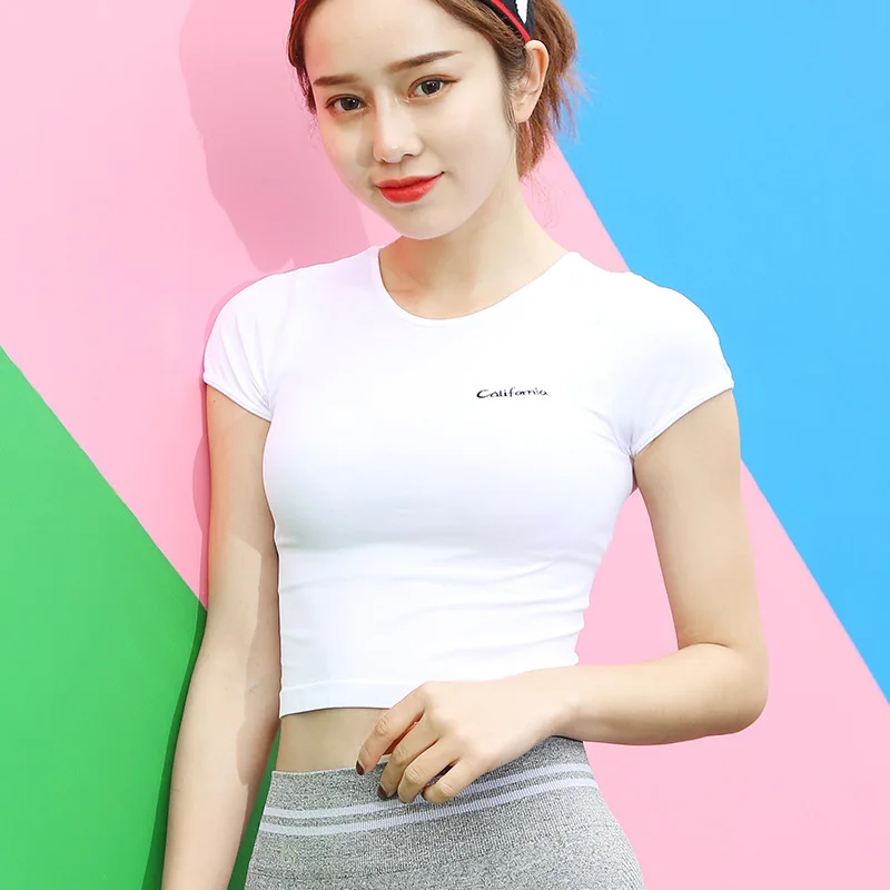 Женская спортивная футболка для фитнеса, летняя тонкая стрейчевая рубашка для йоги, короткий рукав, Короткие топы, быстросохнущая компрессионная одежда для бега