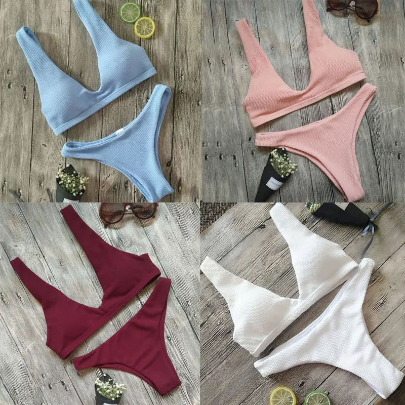 Женские бикини от ZTVitality, одноцветное бикини, горячая распродажа 2019, бюстгальтер с наполнителем, на тонких бретелях, с высокой талией, сексуа...