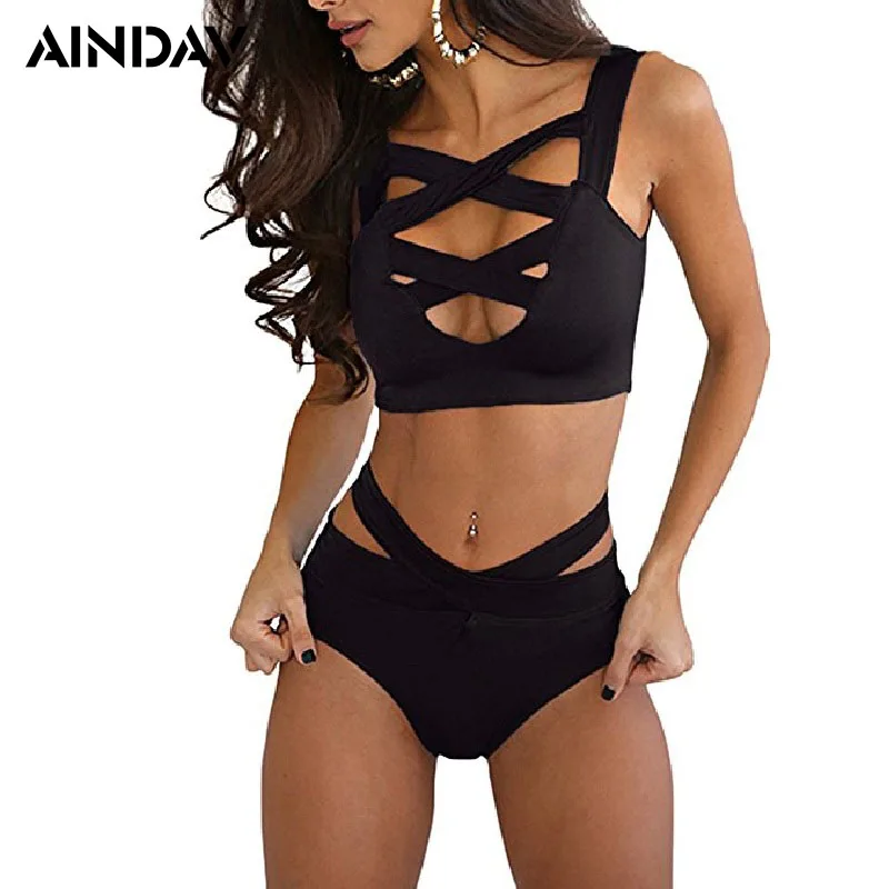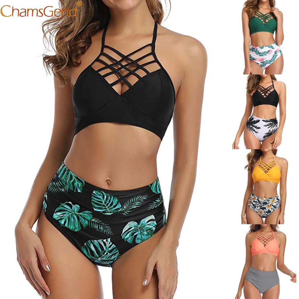 Сексуальная Criss Cross Высокая талия повязку 2 шт. комплект бикини пуш-ап купальники Для женщин купальник пляжная одежда Купальные костюмы Браз...