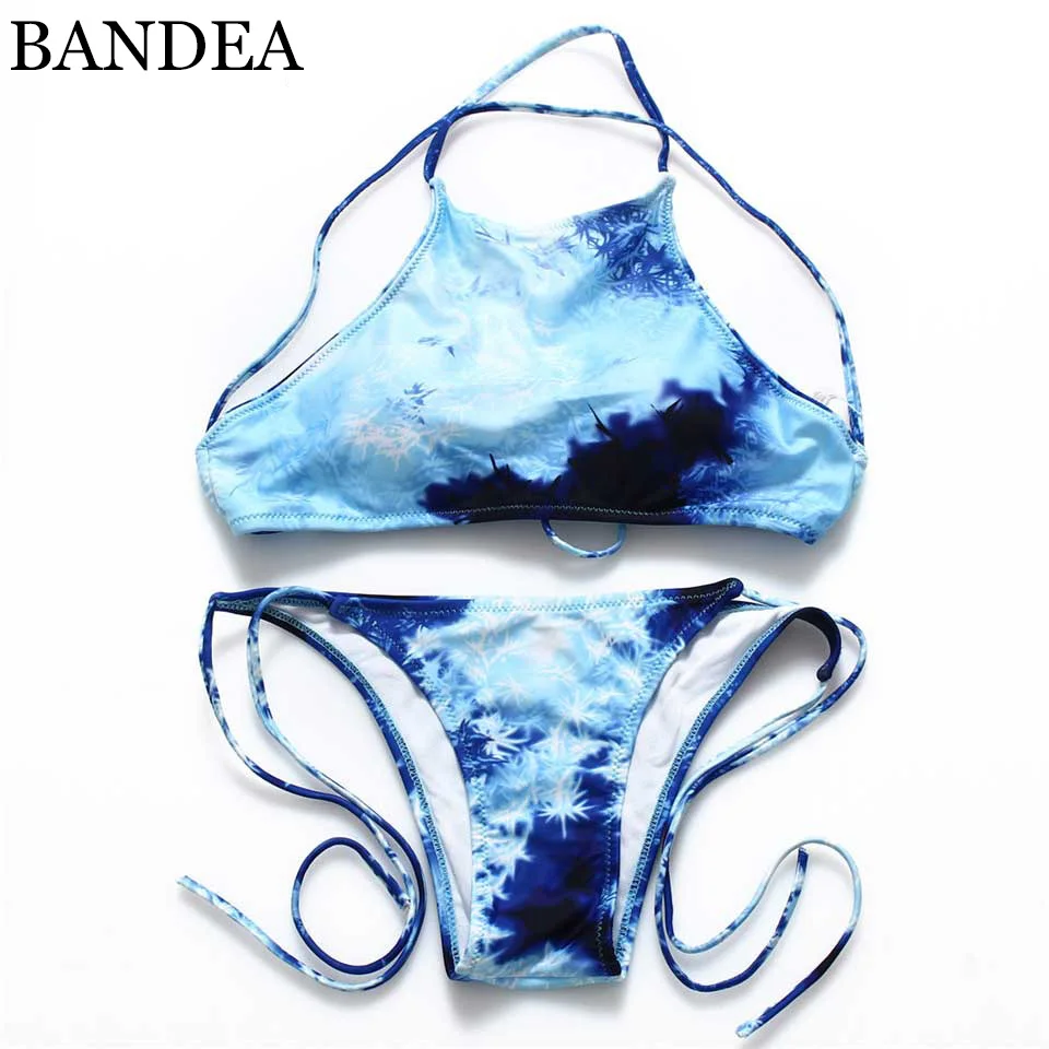 BANDEA 2019 костюм топ высокое средства ухода за кожей Шеи съемная подкладка комплект бикини с цветочным принтом Купальник Мягкий Купальники дл...