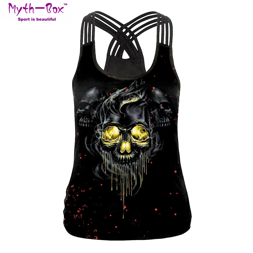 Летний женский спортивный жилет с 3D принтом черепа, рубашки для йоги, майка для бега, Майка для девочек, спортивный бюстгальтер с перекрестной бретелькой, фитнес-жилет, блузка