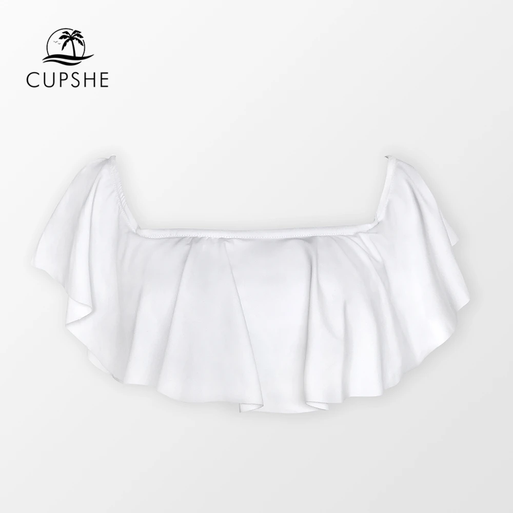 Женский купальник-бандо CUPSHE, однотонный Белый бикини с гофрированными бретелями, 2020