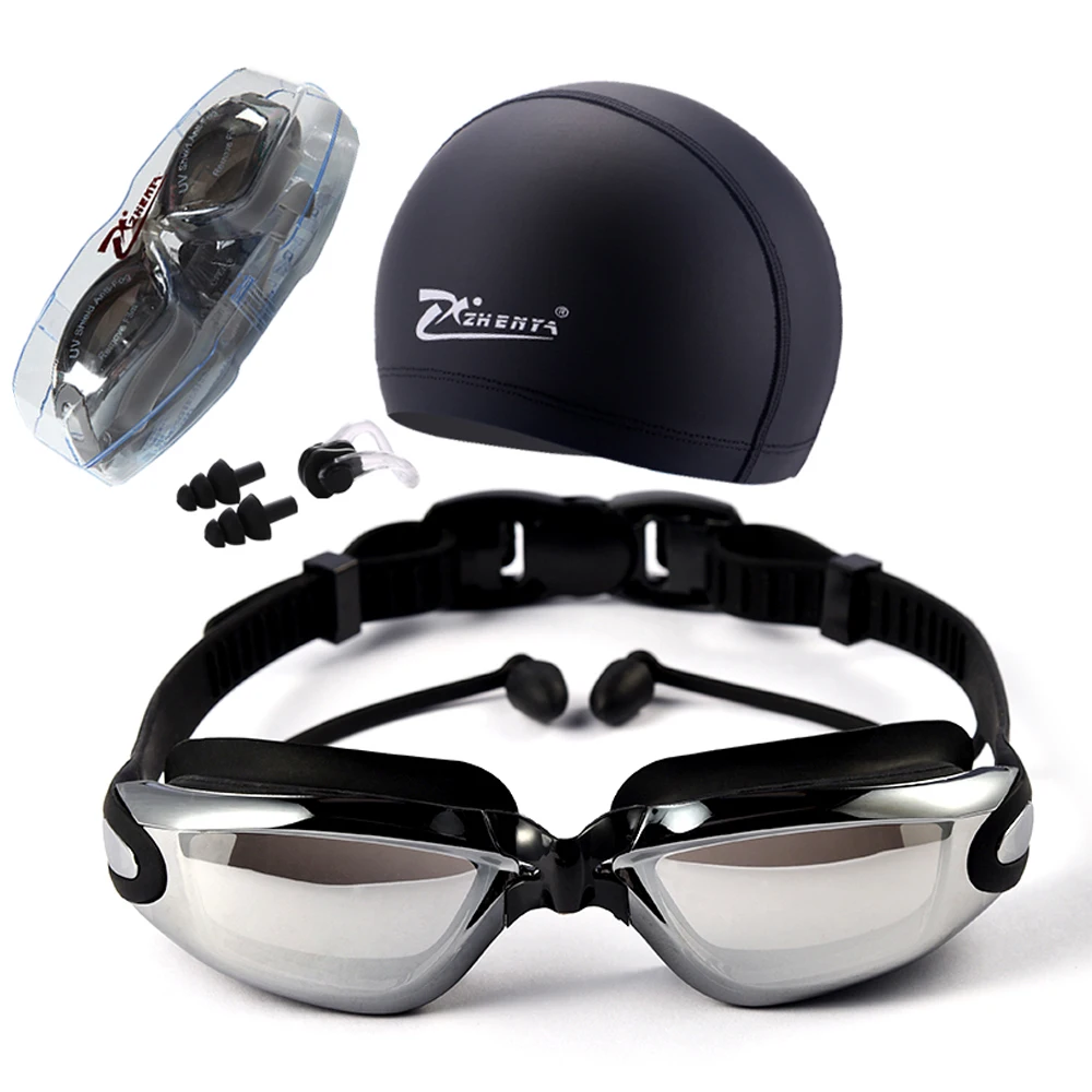 плавательные очки Комплект из 3 предметов мужские профессиональной близорукости плавательные очки зажим для носа беруши для плавания ПУ ша...