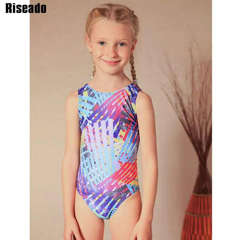 Riseado/новый спортивный Цельный купальник для девочек, детские купальники 2019, купальные костюмы с принтом сзади для детей 8-12 лет
