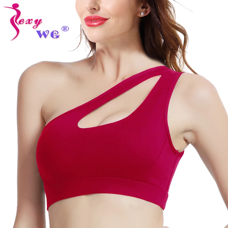 SEXYWG сексуальный спортивный бюстгальтер на одно плечо, спортивный бюстгальтер для женщин, бюстгальтеры для йоги, спортивные топы с мягкой по...