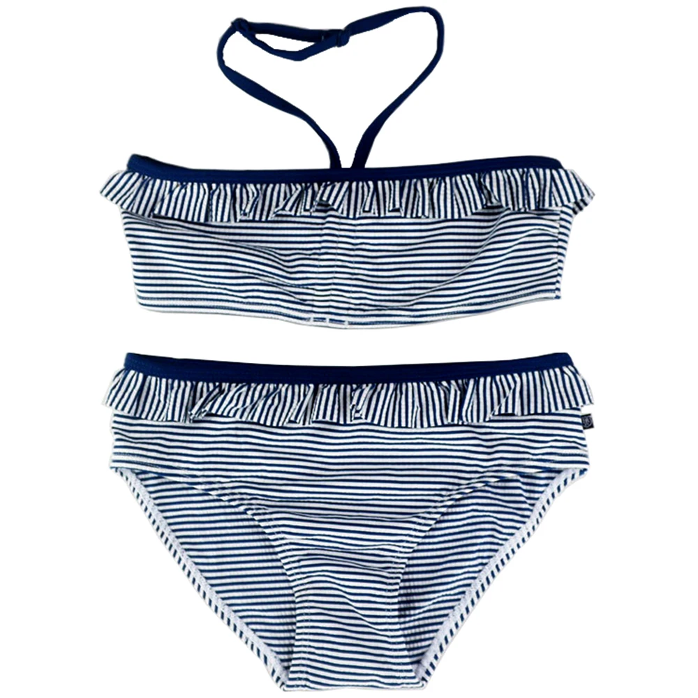От 8 до 16 лет для девочек-подростков комплект бикини в полоску Плавание Одежда для маленьких детей для девочек biquini falbala Плавание костюм ребе...