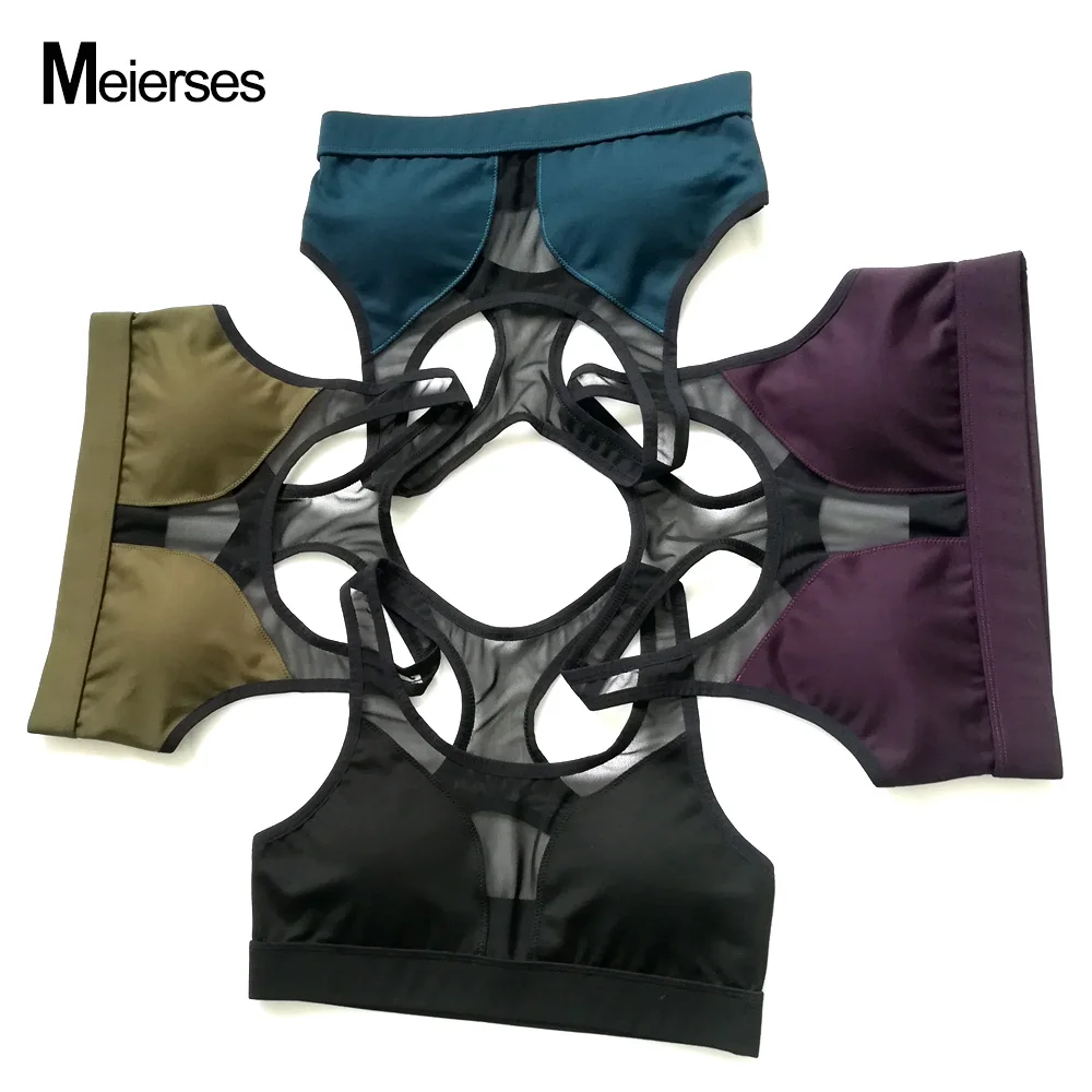 MEIERSES для женщин спортивный бюстгальтер для фитнеса одежда дышащий Бег жилет сетки лоскутное тренировки майка 2019 Новый Йога Топ спортивный ...