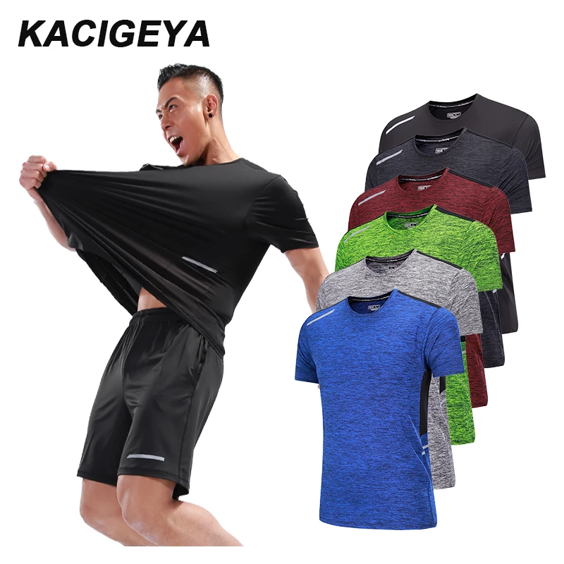 Для мужчин тренировки футболки быстросохнущая короткий рукав открытый Training 2018 Спортивная футболка обувь с дышащей сеткой бег Бодибилдинг