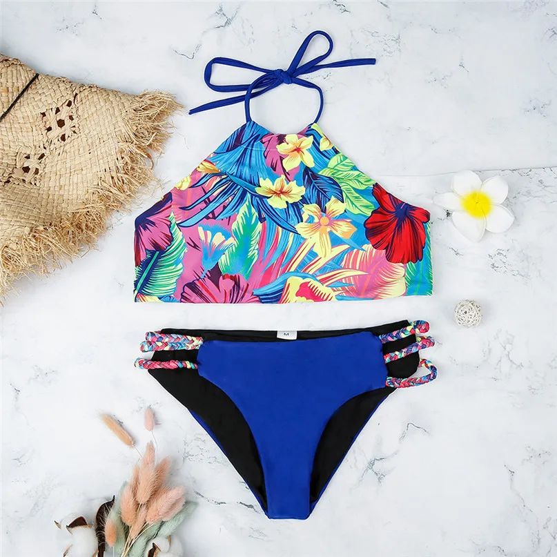 Сексуальные бикини Для женщин купальник 2019 летний комплект из двух предметов, купальный костюм пуш-ап, бикини, с полоской через шею, купальн...