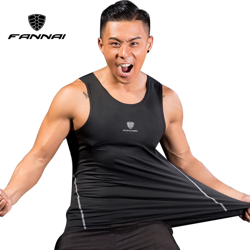Быстросохнущий жилет FANNAI для бега на заказ, тренировочный топ для тренировок, компрессионные трико для фитнеса, Спортивная мужская футболка без рукавов для спортзала