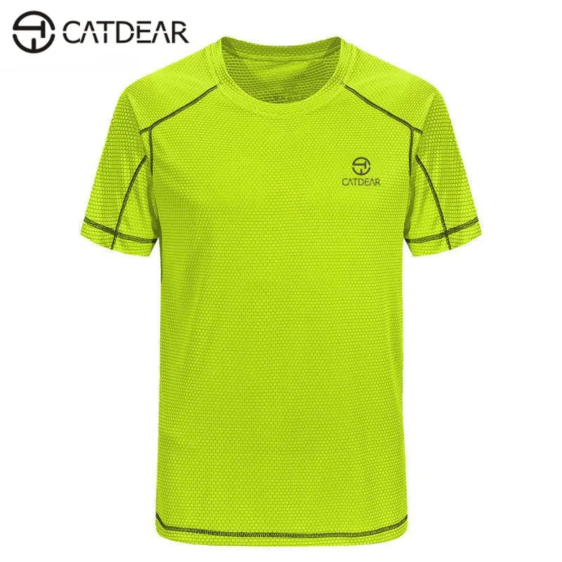 Бренд CATDEAR Спортивная футболка Летняя Беговая впитывающая пот быстросохнущая футболка спорт на открытом воздухе кемпинг мужская быстросох...