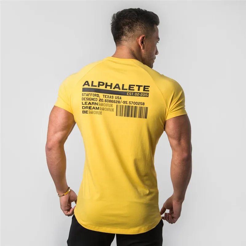 2019 Летняя мужская футболка для бега в тренажерном зале, для фитнеса, бодибилдинга, с буквенным принтом, Мужская короткая хлопковая Спортивн...