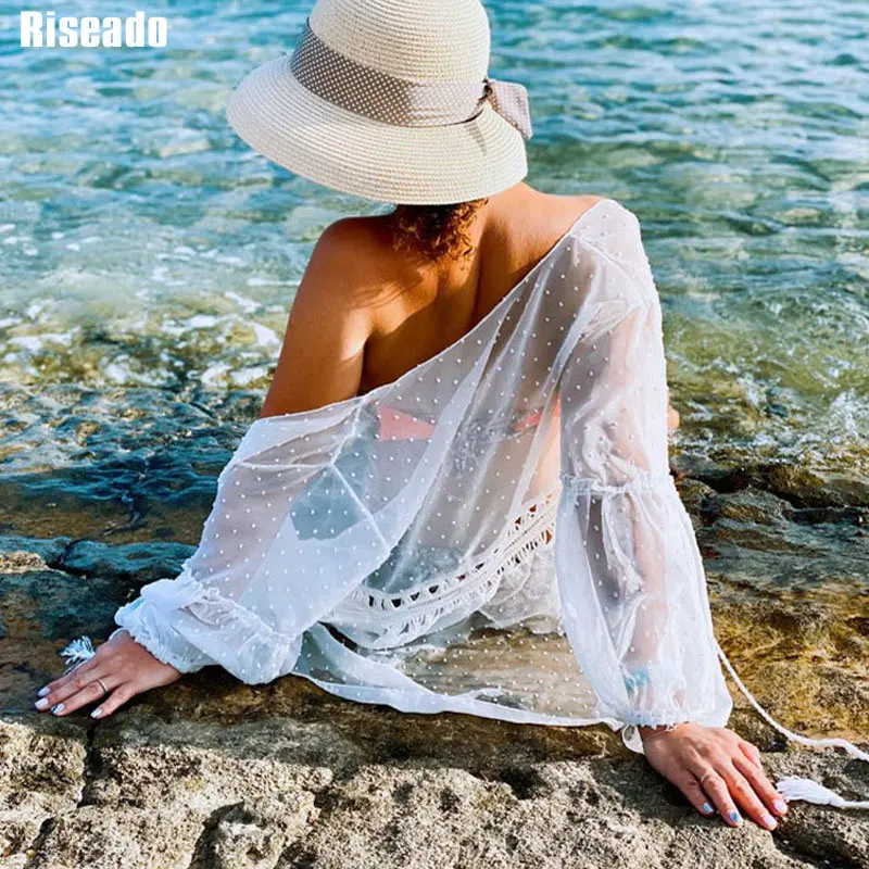 Riseado 2019 длинные пляжное платье с длинным рукавом Купальники женские накидки полые купальные костюмы купальники однотонные пикантные купал...