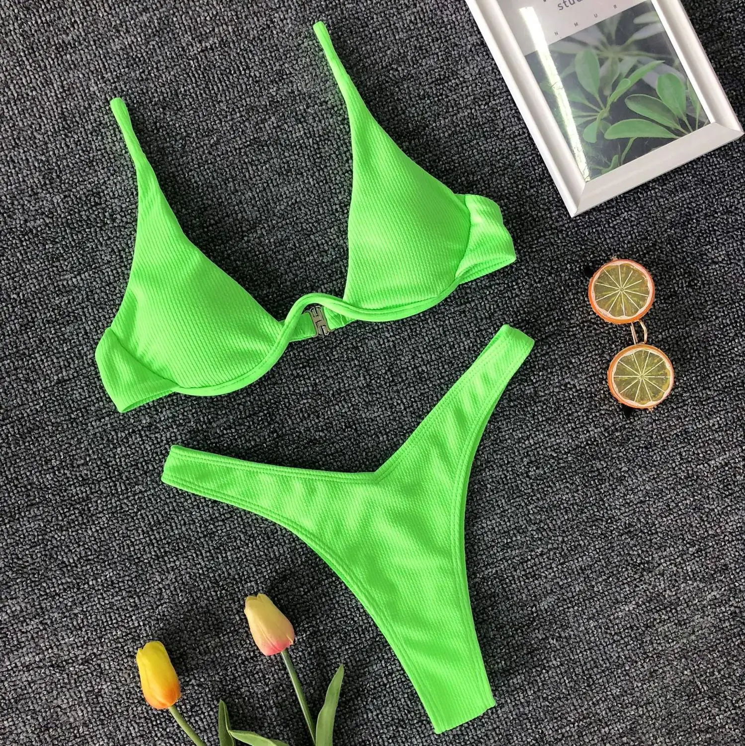 Мода 2020, Женский Одноцветный летний комплект бикини, повседневный купальный костюм, купальник с низкой талией, Бразильское бикини, сексуаль...