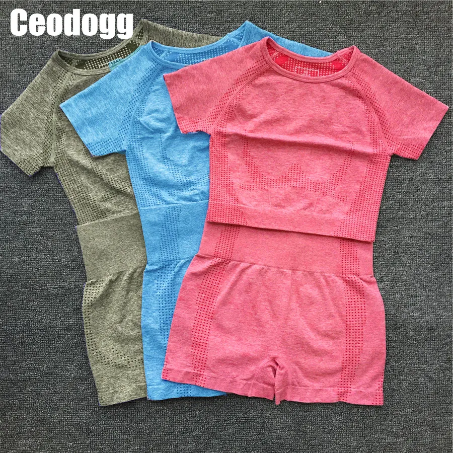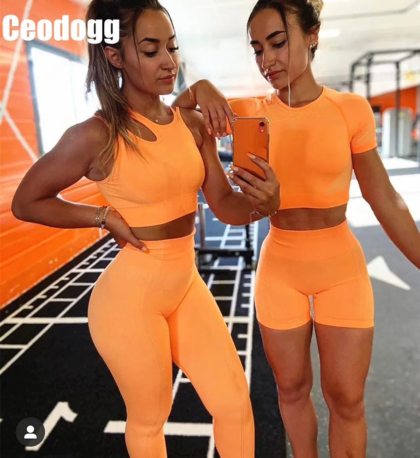 Бесшовный костюм для йоги, спортивный бюстгальтер для фитнеса, одежда для спортзала, укороченный топ с длинным рукавом, рубашки, спортивные Леггинсы, шорты, набор для тренировок для женщин