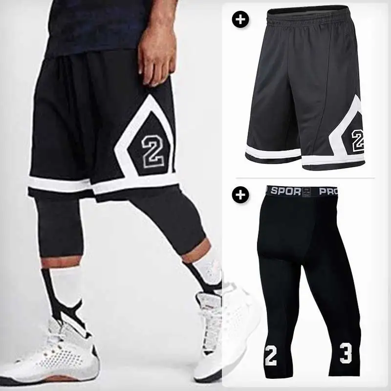 Мужские баскетбольные наборы, спортивные быстросохнущие тренировочные шорты + колготки для мужчин, футбольные упражнения, Пешие прогулки, ...