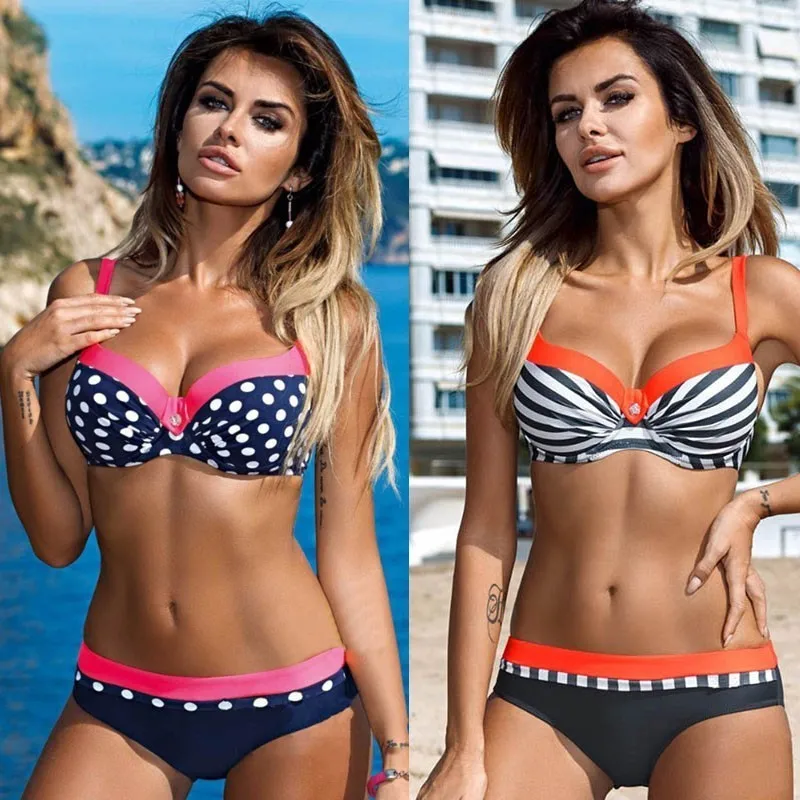 Для женщин пикантные полосатый принт бикини Пуш Ап купальник облегающий костюм 2019 купальники в стиле ретро ванный Комплект женский купальн...