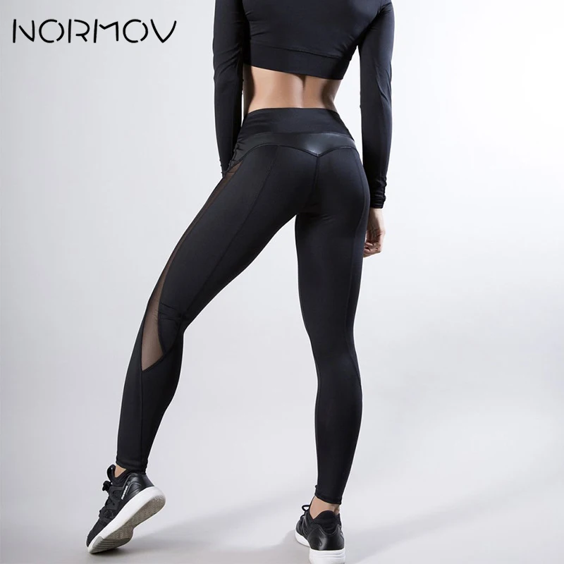 NORMOV женские сетчатые кожаные легинсы для йоги в стиле пэчворк с высокой талией Черные Леггинсы спортивные женские штаны для фитнеса