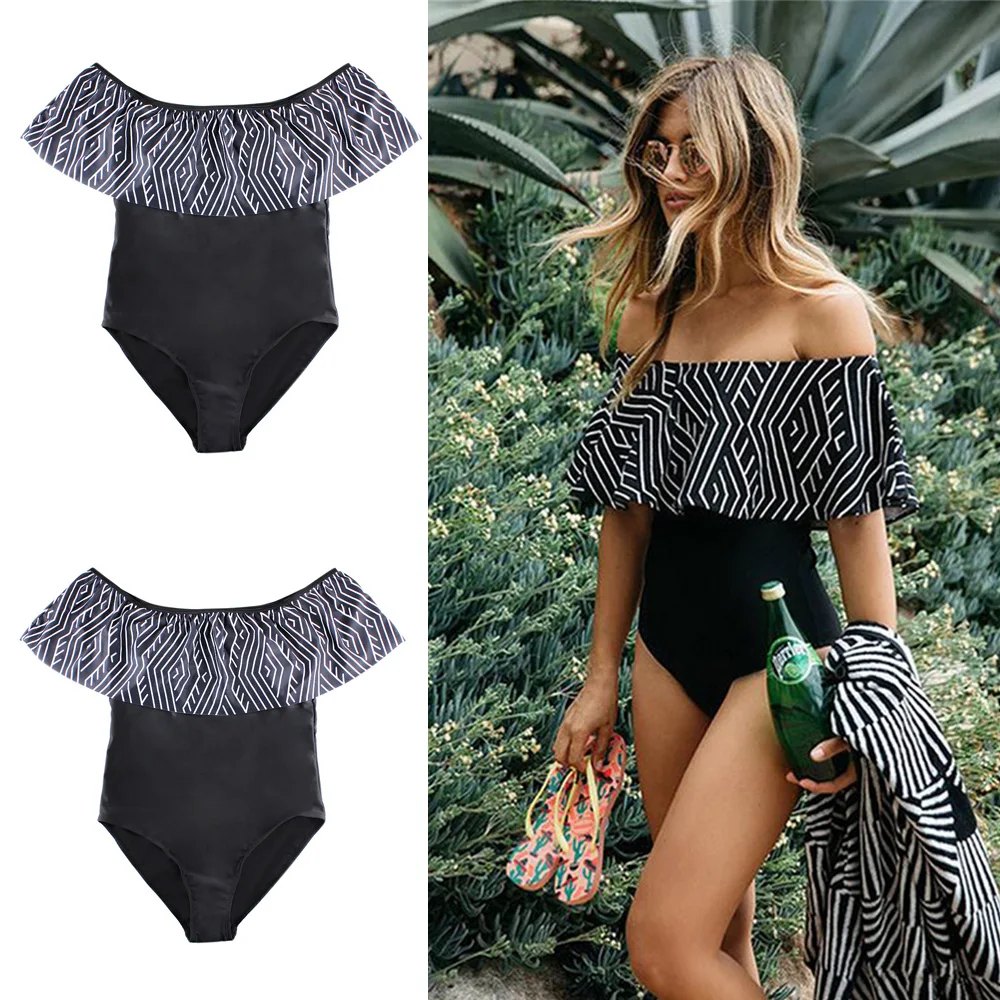 Плавание одежда для женщин сплошной сексуальный с плеча сплошной купальник женский ванный комплект одежда цветочным принтом