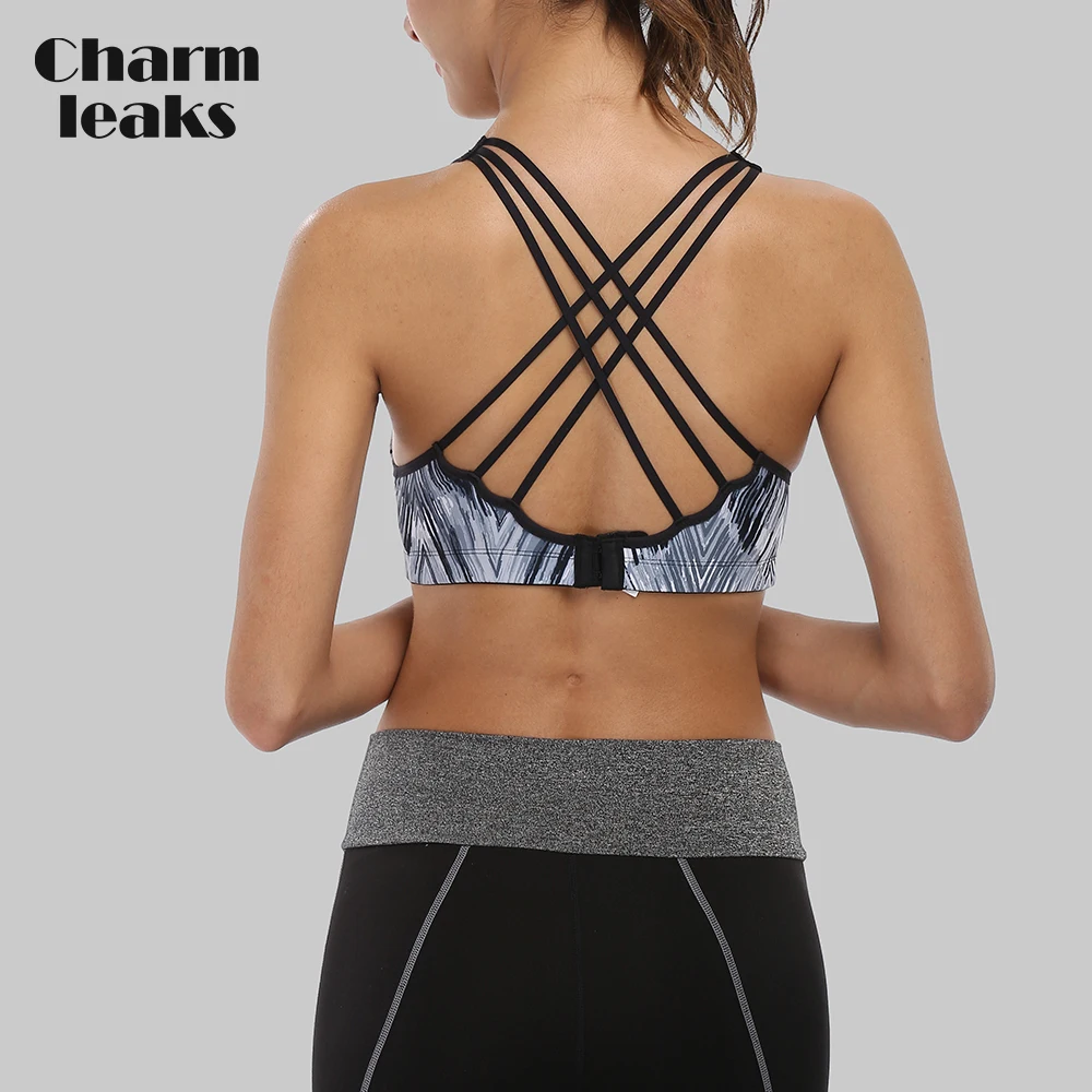Charmleaks Для женщин спортивный бюстгальтер Med Impact Поддержка обратного скрещивания Бюстгалтер для йоги и бега спортивный бюстгальтер нижнее бе...